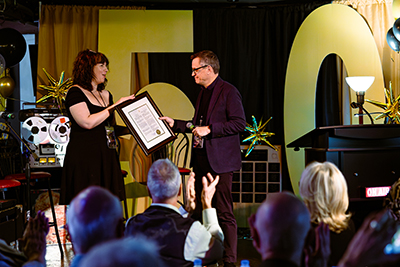 Saturday night’s Alumni Anniversary Dinner & Spectacle (some called it a Gala) featured speeches, awards, reminiscences, a photo booth, displays of ephemera, merch sales and, of course, dinner.