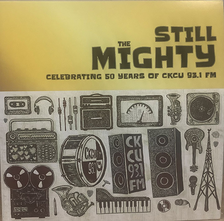 “Still The Mighty – Celebrating 50 Years of CKCU 93.1 FM” (the LP version) is on limited (to 300 copies) GOLD vinyl featuring 13 tracks by Ottawa Artists: The Atomic Tempunauts, Crisis Party, Slo’ Tom & The Handsome Devils, Sleep Late, Claude Munson, Tara Holloway & Naviger, King Kimbit, The PepTides, LH Express, James Leclaire, Vicki Brittle, OK Naledi & Smelloship